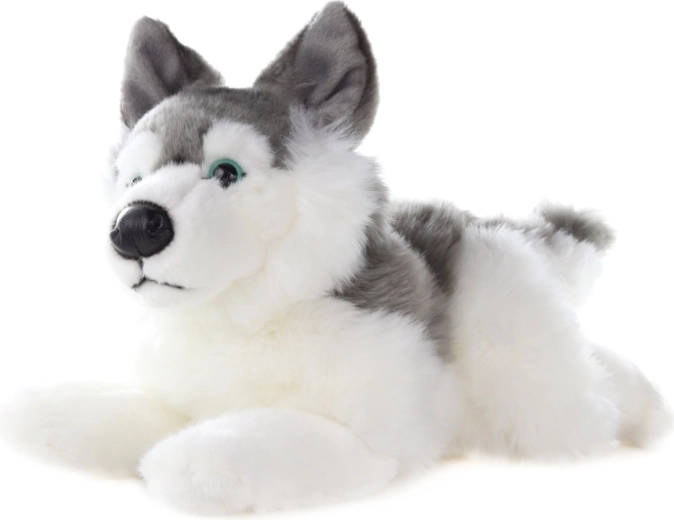 Schattige pluchen husky van 34 cm, ideaal als knuffel voor kinderen en volwassenen. Biedt zachte en aaibare afwerking, veilige uitvoering voor leeftijd 0+ en is een universeel cadeau voor elke gelegenheid.