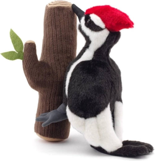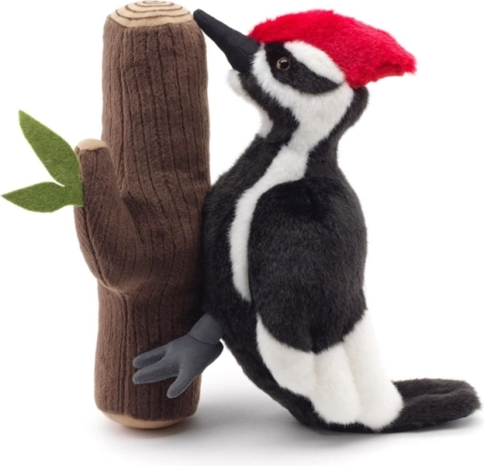 Deze pluchen specht met zijn kenmerkende rode kuif en contrasterende zwart-witte verenkleed is bevestigd aan een zachte “boom” met blaadjes, waardoor hij zeer realistisch oogt. Dankzij de zachte pluche is hij ideaal om mee te knuffelen, als decoratie in de kinderkamer en voor fantasierijk spel.