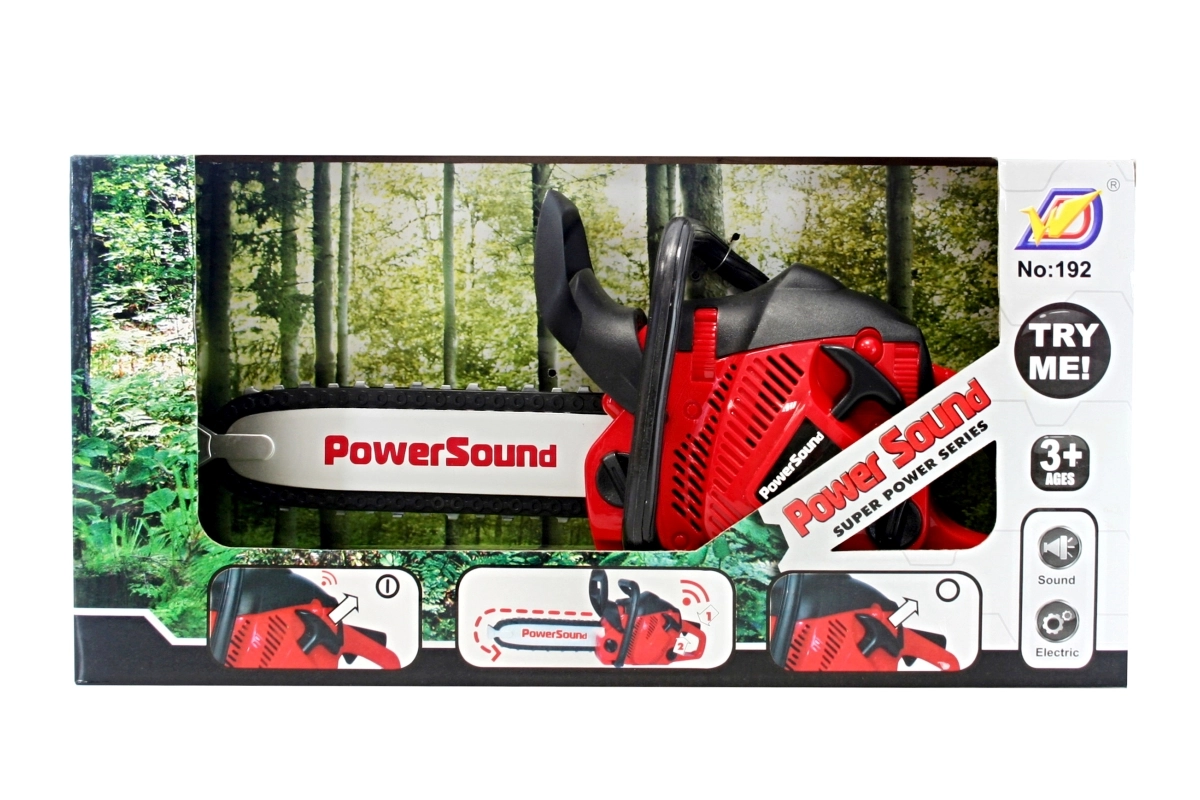 Deze plastic kinderkettingzaag bootst het uiterlijk en de geluiden van echt gereedschap getrouw na, maar is volledig aangepast aan kinderhanden. Met twee knoppen starten kinderen eenvoudig de “motor”, activeren ze geluideffecten en laten ze de veilige gesimuleerde ketting draaien.