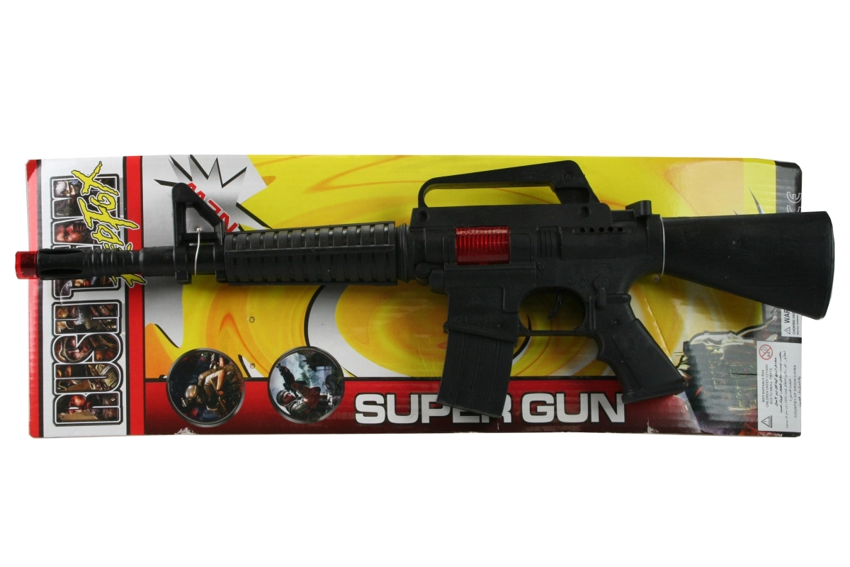 Beleef volop speelplezier met de zwarte plastic mitrailleur, perfect voor jonge fans van actiegames. Het speelgoed is licht, ligt prettig in de hand en produceert bij het indrukken van de trekker ratelende geluiden en een vonkelexeffect, waardoor het nog realistischer aanvoelt.