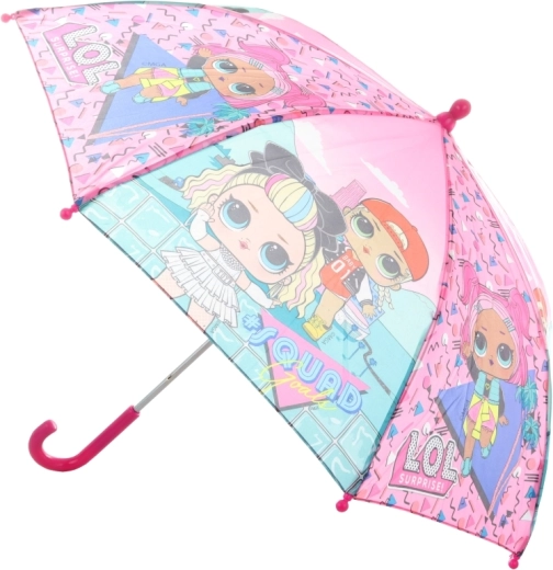 Deze automatische paraplu met L.O.L. poppen-motief is ideaal voor kinderen, dankzij het stevige stalen frame en de comfortabele kunststof handgreep.