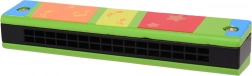 Met decoratieve motieven van noten en sterren ziet deze mondharmonica er niet alleen geweldig uit, maar stimuleert het ook de verbeelding van kinderen.
