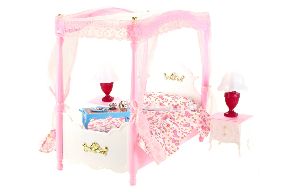 Dit gedetailleerde hemelbed verandert de poppenkamer in een knus koninkrijk. Dankzij de rijke accessoires en de werkende lampjes beleven kinderen veel realistische scènes en plezier. De hoogwaardige kunststof uitvoering zorgt voor duurzaamheid en eenvoudig onderhoud.