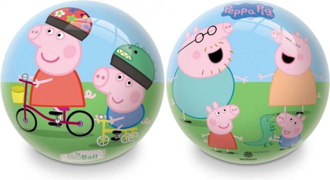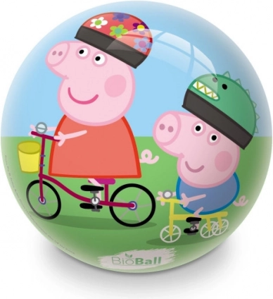 De bal is versierd met kleurrijke illustraties uit de Peppa Pig tekenfilm, die vreugde en plezier brengen.