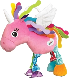 De schattige eenhoorn Tilly van Lamaze is een superzachte interactieve speelgoedvriend voor de allerkleinsten, die zien, tasten, motoriek en gehoor stimuleert. Hij combineert verschillende texturen en contrasterende patronen, maakt geluid bij schudden en heeft knisperende vleugels en pootjes. Dankzij de praktische clip bevestig je hem eenvoudig aan kinderwagen, autostoeltje of ledikant. Geschikt vanaf de geboorte.
