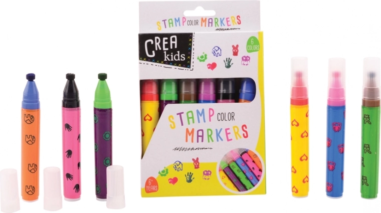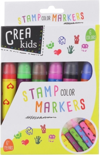 Creatieve set voor kleine kunstenaars: de verpakking bevat 6 kinder-stempels die ideaal zijn voor knutselen, dagboeken en wenskaarten. De compacte verpakkingsgrootte van ca. 12 × 18,5 cm en de aanbevolen leeftijd 6+ zorgen voor eenvoudig gebruik en veilig plezier.