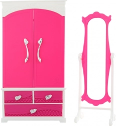 De GLORIE kledingkast met spiegel is een geweldige aanvulling op de wereld van poppen. Biedt openende deurtjes en lades voor het opbergen van jurkjes en accessoires en praktische hangers voor het ophangen van favoriete outfits. Dankzij de meegeleverde spiegel kunnen kinderen gemakkelijk combineren en nieuwe stijlvolle creaties uitproberen.