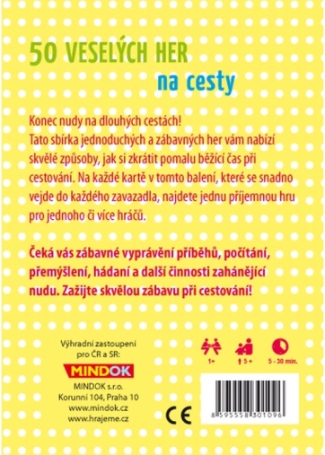 Geniet van reizen zonder verveling met de compacte set “50 vrolijke reisgames”. In de doos vind je kaartjes met eenvoudige activiteiten voor één of meerdere spelers – ideaal voor auto, trein en vliegtuig. Snelle fun, eenvoudige regels en veel variaties zorgen ervoor dat de tijd onderweg voorbijvliegt.