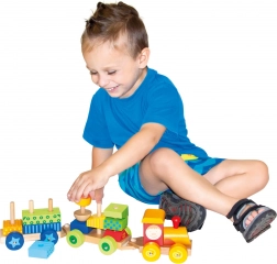 Multifunctioneel houten treintje is niet alleen een trekker, maar ook een bouwset waarmee kinderen hun creativiteit kunnen ontwikkelen. De trein omvat drie onderstellen en 18 verschillende blokken die naar fantasie kunnen worden gestapeld.