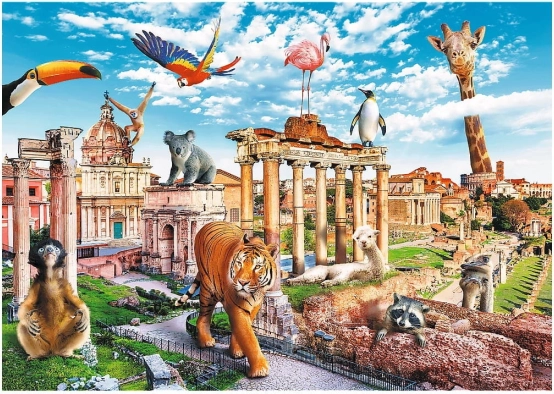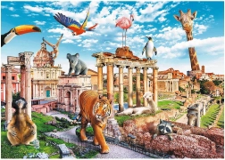 Ontdek Rome zoals je het nog nooit hebt gezien – met tijgers, giraffen en flamingo’s tussen antieke monumenten. De Trefl-puzzel Funny Cities – het wilde Rome biedt een kleurrijke en grappige illustratie die zowel tieners als volwassenen zal bekoren en vrije momenten omtovert tot een ontspannende, creatieve ervaring.