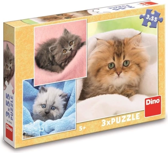 Drie legpuzzels met schattige kittens zullen kleine puzzelaars blij maken: elk heeft 55 stukjes, het eindformaat is 18×18 cm en het leggen stimuleert de fijne motoriek, concentratie en verbeeldingskracht. Gemaakt van duurzaam en gezondheidsveilig karton in de Tsjechische Republiek.