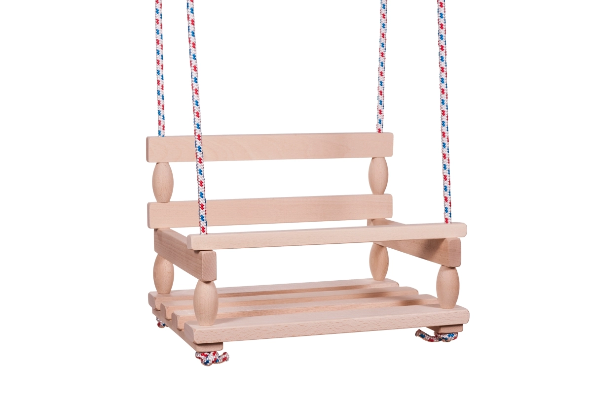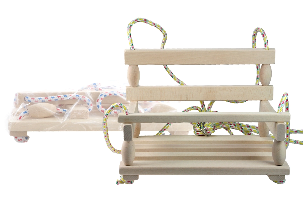 De duurzame houten constructie met een glad oppervlak zorgt voor een lange levensduur en comfortabel zitten bij elke zwaai.