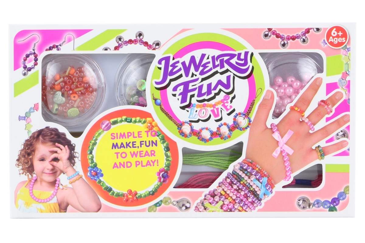 Maak je eigen originele armbanden en kettingen met deze creatieve kralenset. Bevat 3 soorten kralen, 2 katoenen koorden om te rijgen en extra accessoires die fijne motoriek, creativiteit en leuk knutselen stimuleren voor kinderen vanaf 6 jaar.