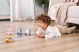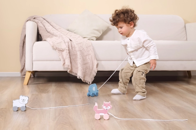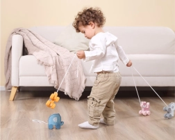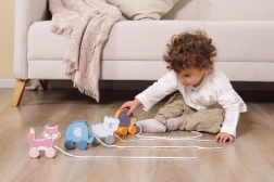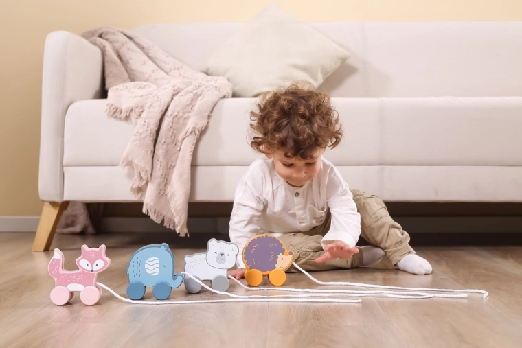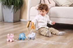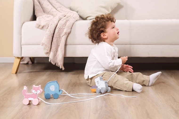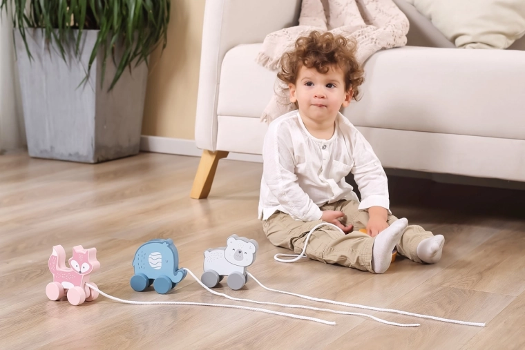 Het trekdiertje is licht, gemakkelijk vast te pakken en veilig – het heeft gladde randen en een hoogwaardige afwerking. Ideaal voor thuis en voor ritjes door het huis. Het compacte formaat maakt opbergen en meenemen eenvoudig.