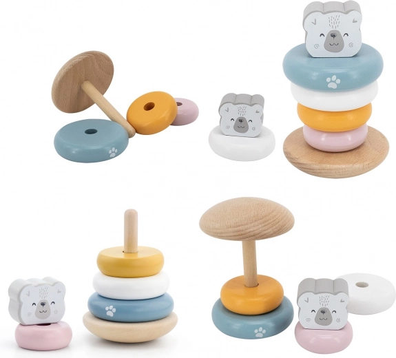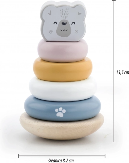 Houten educatieve pyramide met het thema IJsbeer is een ideaal speelgoed voor de kleintjes. Deze pyramide is uitgerust met zes ringen van verschillende maten en kleuren, inclusief één hoofd ring met berenhoofd. Dankzij de duurzame houten constructie is het speelgoed niet alleen veilig, maar ook duurzaam.