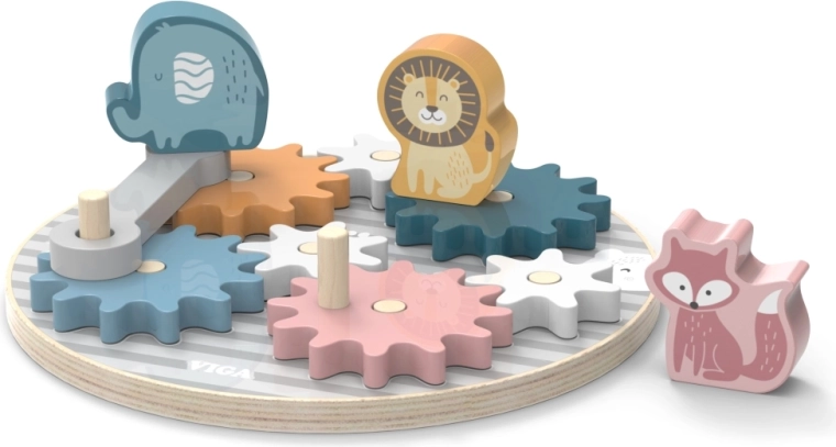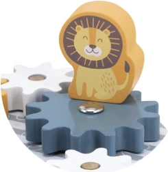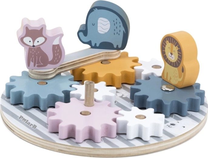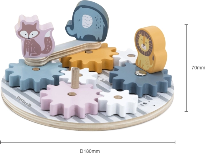 Stimuleer plezier en ontwikkeling met onze houten tandwielblokken, waar mechanica een spel wordt. De set bevat 7 kleurrijke tandwieldelen, 3 leuke dierenfiguurtjes en een basisplaat waarop je de tandwielen kunt plaatsen zodat één wiel de andere in beweging zet.