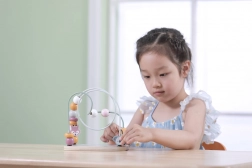 De kralen-doolhof helpt de oog-handcoördinatie en fijne motoriek te verbeteren terwijl kinderen de kralen over de draadbanen bewegen.