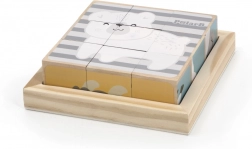 Ontdek een tijdloos houten speelgoed dat zowel leuk als leerzaam is. Met 9 blokken maak je in totaal 6 verschillende dierenmotieven – bijvoorbeeld een beer, vos, koala, zebra of egel. Elke zijde van het blok hoort bij een andere afbeelding, waardoor kinderen hun aandacht, geduld en ruimtelijk inzicht oefenen.
