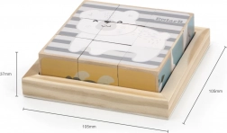 Met deze hoogwaardige houten blokken leg je tot 6 schattige dierenafbeeldingen. Negen stevige massieve blokjes zijn ideaal voor kinderen vanaf 2 jaar en stimuleren de fijne motoriek, het logisch denken en het visueel waarnemen. Veilige afwerking, prettige pasteltinten en een duurzame constructie voor dagelijks speelplezier.