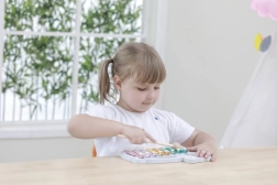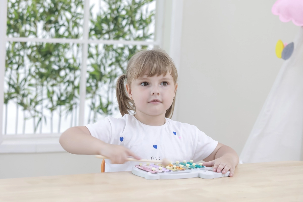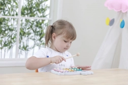 Acht pastelkleurige toetsen stimuleren kinderen om tonen, ritme en eenvoudige melodieën te ontdekken. Perfect voor de ontwikkeling van auditieve waarneming en creativiteit.