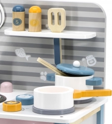 Breng kinderspel tot leven met deze aantrekkelijke houten keuken. Ontworpen voor jonge koks, biedt deze keuken kinderen de mogelijkheid om koken en bakken na te bootsen dankzij de realistische elementen.