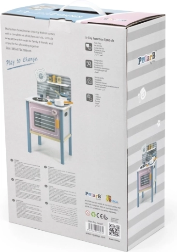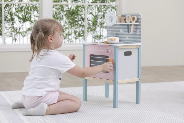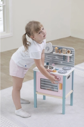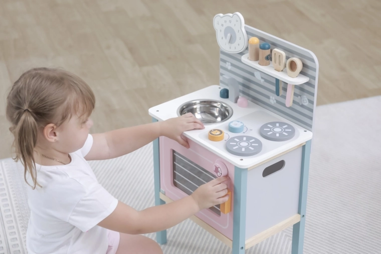 De keuken is ontworpen voor veilig spelen door kinderen vanaf drie jaar en ondersteunt de ontwikkeling van de fijne motoriek en imitatiespel.