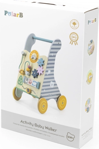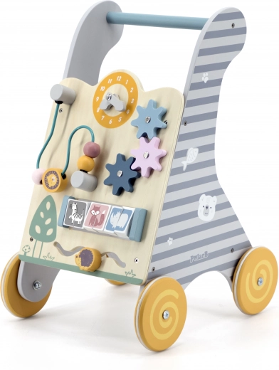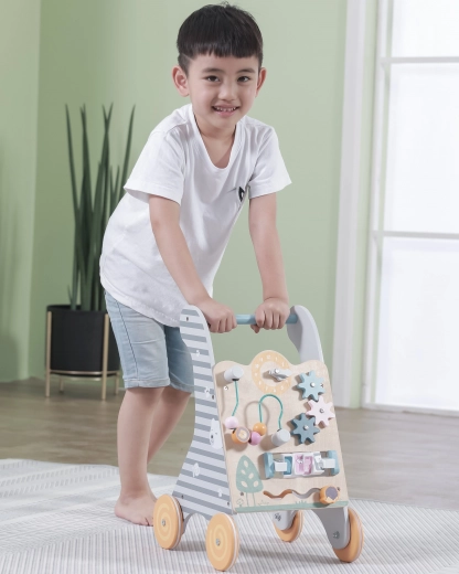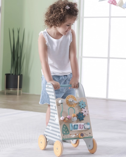De loopwagen helpt bij het ontwikkelen van motorische vaardigheden bij kinderen dankzij de veilige constructie en interactieve onderdelen.
