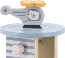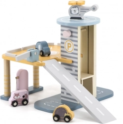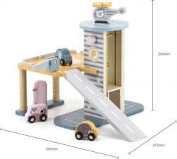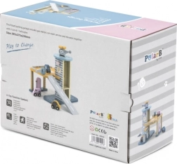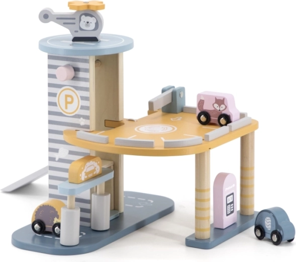 De houten garage met helikopter en autootjes is een geweldige speelgoedset die de creativiteit en de ontwikkeling van motorische vaardigheden van kinderen stimuleert. Deze interactieve set is uitgerust met een autowasstraat, een tankstation en een lift. In de set zitten drie autootjes en één helikopter, allemaal in gedempte kleuren die in elke kinderkamer passen.