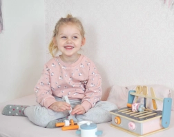 Interactieve elementen zoals draaiknoppen en twee kookplaten geven het koken een realistisch tintje en motiveren kinderen tot langer, geconcentreerd spel.