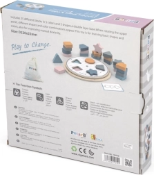 Ontdek een leuk en leerzaam spel waarmee kinderen op natuurlijke wijze leren vormen en kleuren te herkennen. Het draaibare bord maakt het mogelijk om kleurpatronen te veranderen, waardoor het spel steeds boeiend en gevarieerd blijft. De voorbeeldkaarten begeleiden kinderen stap voor stap en ontwikkelen hun logica, concentratie en oog–handcoördinatie.