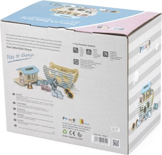 Met 14 onderdelen – de ark, het huisje en een set dieren – leren kinderen vormen, kleuren en paren te onderscheiden, terwijl ze oog-handcoördinatie en logisch denken trainen. Het speelgoed is geschikt vanaf 18 maanden en dankzij de afgeronde randen veilig voor kleine ontdekkers.