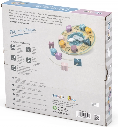 Duidelijk leesbare cijfers, stipmarkeringen voor visueel tellen en pasteltinten ondersteunen de ontwikkeling van voorschoolse vaardigheden. Beukenhout en niet-giftige verf zorgen voor veiligheid en een lange levensduur. Het speelgoed motiveert tot zelfstandig ontdekken en biedt veel speelwijzen – van cijfers 1–12 ordenen en vormen matchen tot de eerste stappen in tijd leren bepalen.
