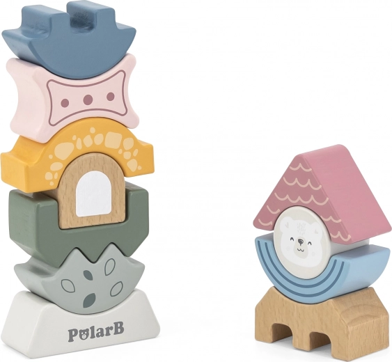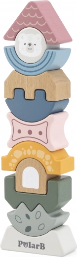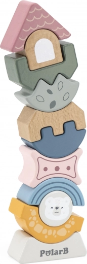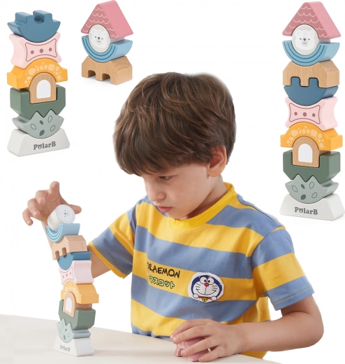 De houten balanceertoren POLARB brengt kinderen spelenderwijs in aanraking met balans en vormen. De taak is om de onderdelen tot een stabiele toren te stapelen zonder dat hij omvalt – een geweldige uitdaging voor geduld en concentratie. Pasteltinten en de aangename textuur van het hout nodigen steeds opnieuw uit tot spelen.