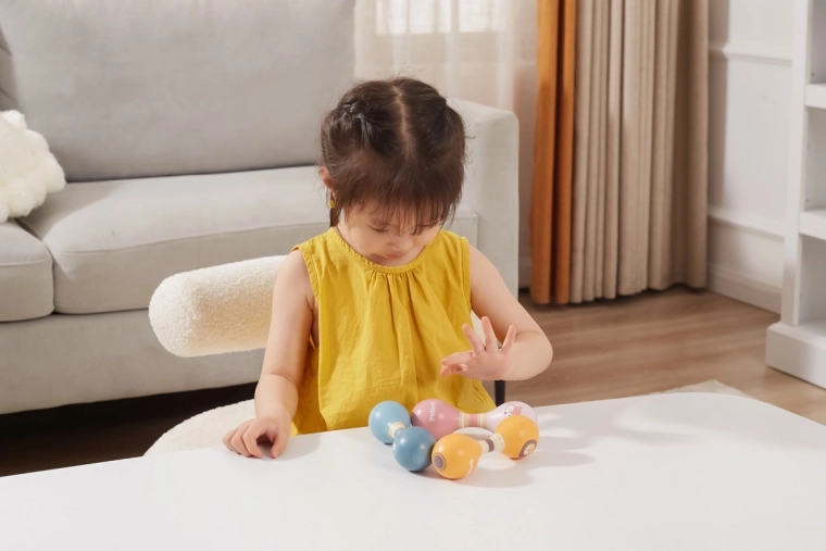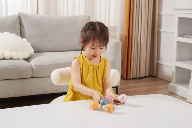 De stijlvolle en veilige rammelaar in de vorm van dubbele maracas is gemaakt van hoogwaardig hout en ontworpen om een zacht en rustgevend geluid te produceren dat prettig is voor kinderoren. Het lage gewicht motiveert kinderen om vaak te grijpen en te schudden, waardoor fijne motoriek, ritme en coördinatie zich op natuurlijke wijze ontwikkelen.