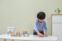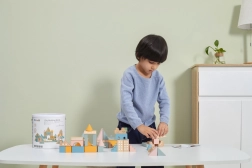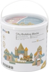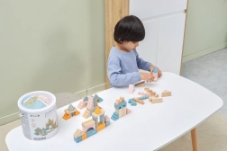 Deze hoogwaardige houten bouwset in een emmer bevat 50 zorgvuldig afgewerkte onderdelen in aangename pasteltinten. Kinderen bouwen er huisjes, torentjes en een hele stad mee, terwijl ze coördinatie, logisch denken en creativiteit ontwikkelen.