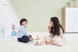 Rollenspel rond het theemoment bevordert communicatie, fantasie en samenwerking tussen kinderen. De kleurrijke gebakjes nodigen uit tot sorteren en tellen, terwijl kopjes en lepeltjes oog-handcoördinatie en fijne motoriek ondersteunen. Het elegante ontwerp in zachte kleuren past mooi in elke kinderkamer.