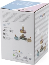 De houten theeset is ideaal voor de eerste sociale spelletjes van kinderen. De tweelaagse etagère met desserts, twee bordjes, twee kopjes en lepeltjes creëert de perfecte scène voor afternoon tea of een feestelijke traktatie. Dankzij de zorgvuldige afwerking van duurzaam hout voelt het speelgoed prettig aan en is het veilig voor kleine handjes.