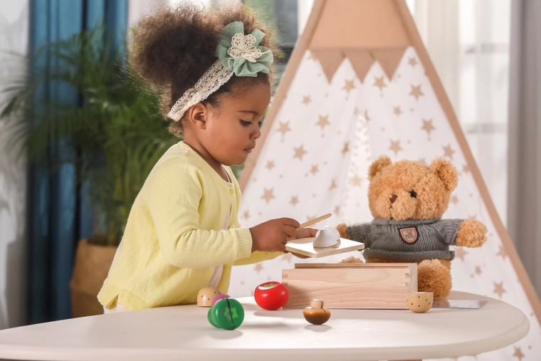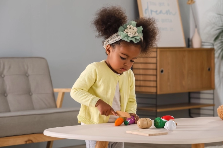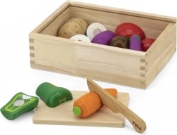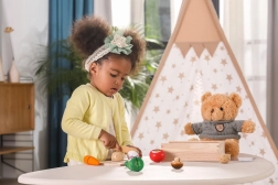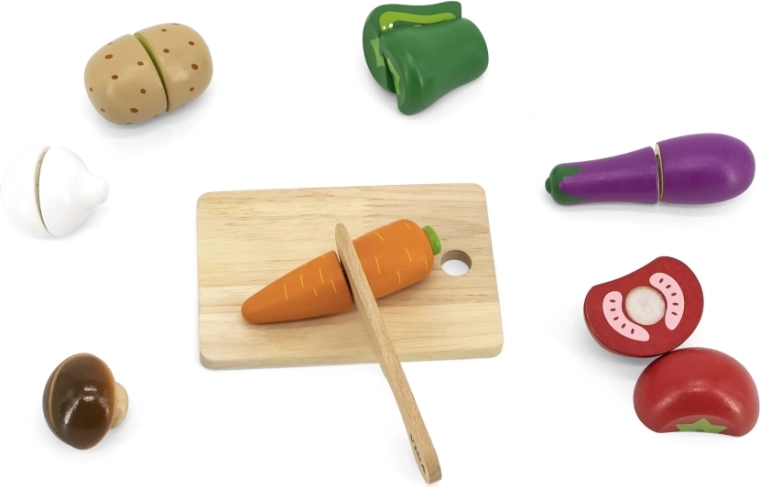 Met deze set kunnen kinderen hun fijne motoriek oefenen tijdens het snijden en samenstellen van groenten naar hun oorspronkelijke vormen.