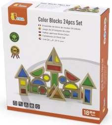 Met deze set houten blokken ontdekken kinderen de wereld van kleuren en vormen. Elk blok is ontworpen om de verbeelding te prikkelen en kinderen nieuwe vaardigheden aan te leren. Met dit speelgoed kunnen kinderen diverse constructies bouwen en basis rekenvaardigheden oefenen.