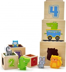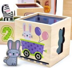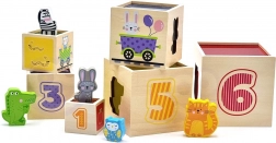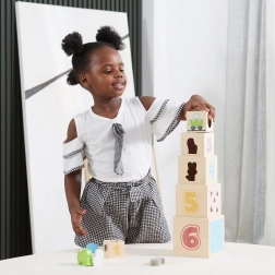 Deze geweldige set bevat zes blokken in verschillende formaten, elk met eigen motieven. Zo leren kinderen onderscheid maken tussen cijfers, vormen, kleuren, groottes en dieren. De blokken kunnen eenvoudig in elkaar worden geplaatst of op elkaar worden gestapeld, wat kinderen helpt het concept van ordening en volgorde te begrijpen.