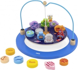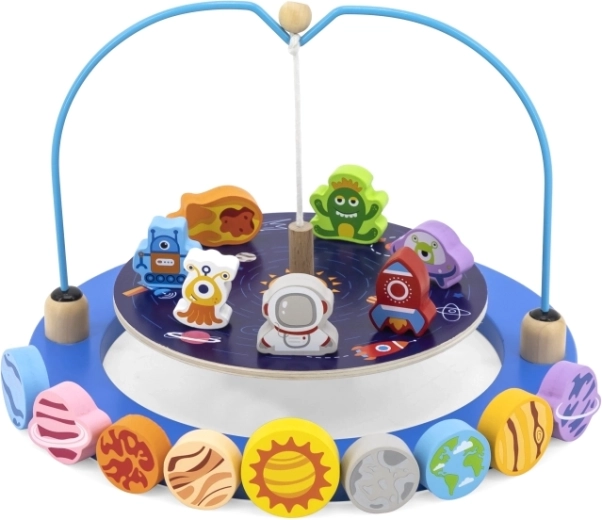 Met het houten spel Balansspel - Ruimtelijk plezier dompelen kinderen zich onder in een ruimtelijk avontuur. Dit leuke en educatieve spel bevat een basis van 26 x 26 x 18 cm, die lijkt op een schijf met ruimtemotieven.