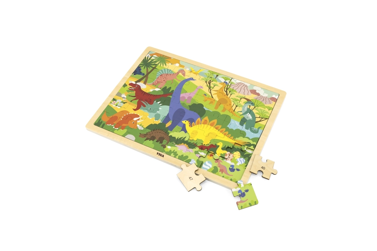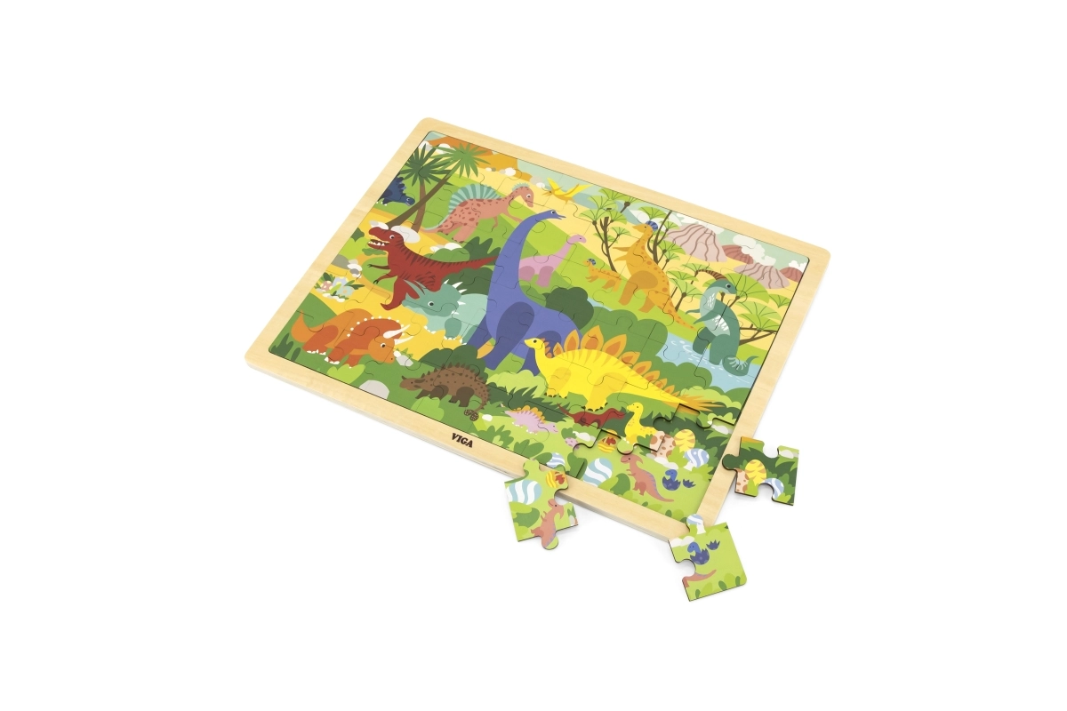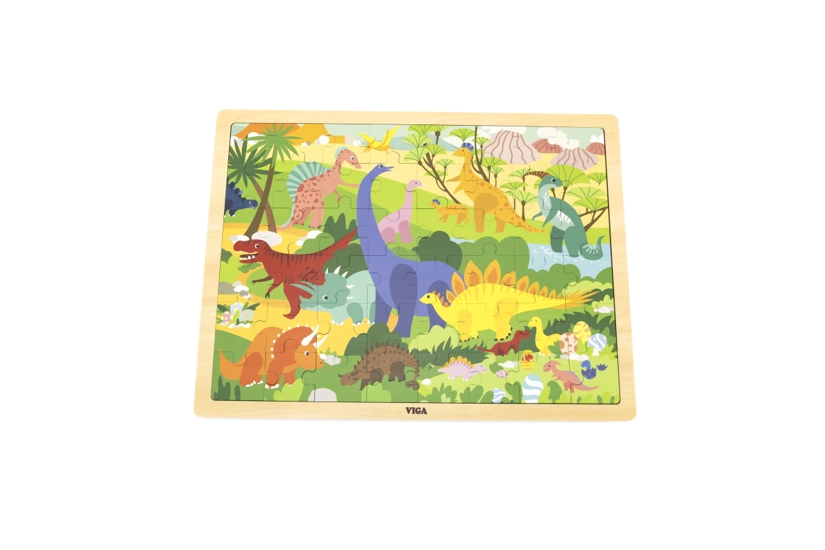 Gun kinderen leerzaam en leuk puzzelplezier met deze houten puzzel met dinosaurusmotief. Dankzij de 48 stukjes is het een ideale eerste “grotere” puzzel die stap voor stap de vaardigheden en het zelfvertrouwen van jonge puzzelaars ontwikkelt. De stukjes zijn stevig, liggen prettig in de hand en kunnen gemakkelijk op het houten bord met frame worden geplaatst.