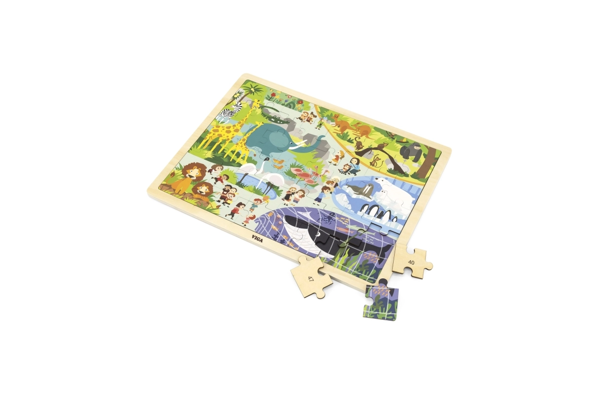 Met 48 stukjes is de puzzel een geweldige stap tussen eenvoudige legpuzzels en meer gevorderde puzzels. Het ondersteunt coördinatievaardigheden, doorlopend waarnemen en het leren herkennen van dieren uit de dierentuin.
