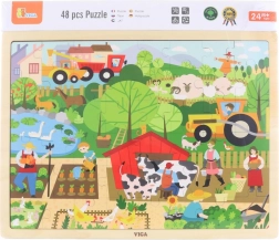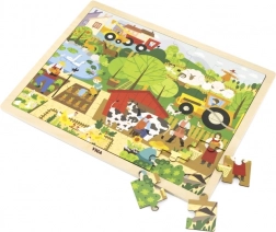 Houten puzzel met een boerderijmotief die kleine liefhebbers van puzzelen zal vermaken. Bevat in totaal 48 stukjes en is ontworpen om kinderen te enthousiasmeren en tegelijk hun motorische vaardigheden te oefenen.