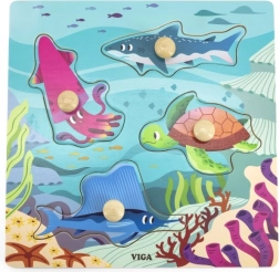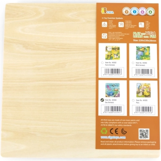 De houten puzzel met zeedierenmotief van het gerenommeerde merk Viga biedt een leuke en educatieve manier voor kinderen om de precisie van handbewegingen en vormherkenning te ontwikkelen. Het speelgoed is geschikt voor kinderen vanaf 12 maanden en helpt de coördinatie en het geheugen te verbeteren.