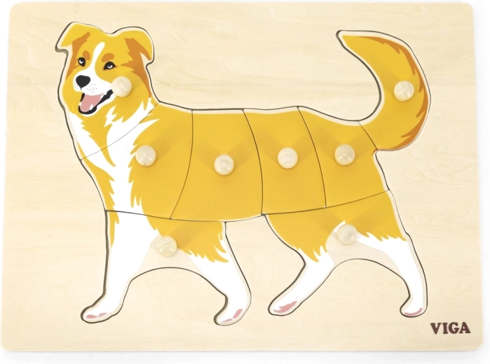 De duurzame houten plaat en de gladde randen zorgen voor veilig en langdurig speelplezier thuis en in de peuterspeelzaal. Het duidelijke hondmotief nodigt uit om te puzzelen.