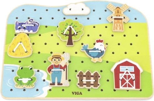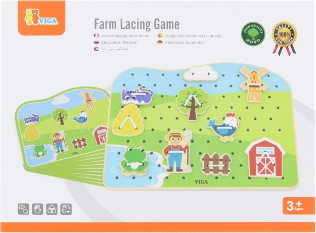 Ontdek een leuk en educatief spel voor de allerkleinsten: een houten rijgset met boerderijthema van VIGA. Kinderen trainen tijdens het rijgen van de veters hun fijne motoriek, nauwkeurigheid en oog-handcoördinatie. Hoogwaardige houten afwerking en niet-giftige verven zorgen voor veilig spel vol creativiteit en plezier.