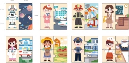 Personages (2 delen) + werkplek (1 groter deel) voor elk beroep