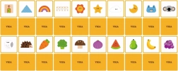 Spel Vang en vind. De set bevat 20 blokken, een papieren emmer, 20 speelkaarten en een deksel. Afmetingen van de verpakking ca. 16 x 15,5 cm. Leeftijd 3+