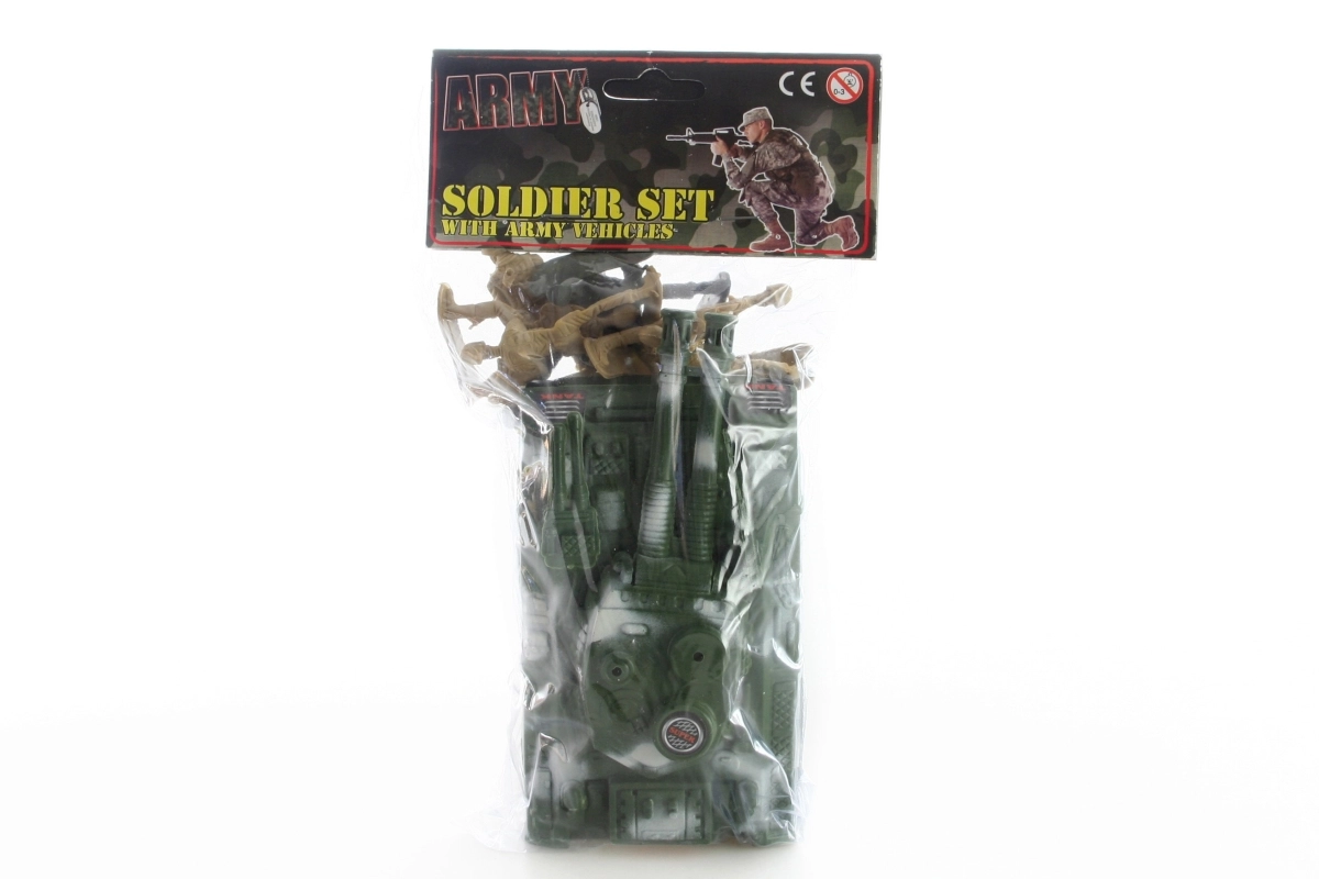 Deze set plastic soldaatjes met tank zorgt voor uren actievermaak voor kinderen. Dankzij de compacte afmetingen is hij ideaal voor thuis en onderweg. De tank van ca. 18 × 9 × 7 cm is eenvoudig te bedienen en wordt aangevuld met een set soldaatjes om je eigen gevechtsscènes te creëren.